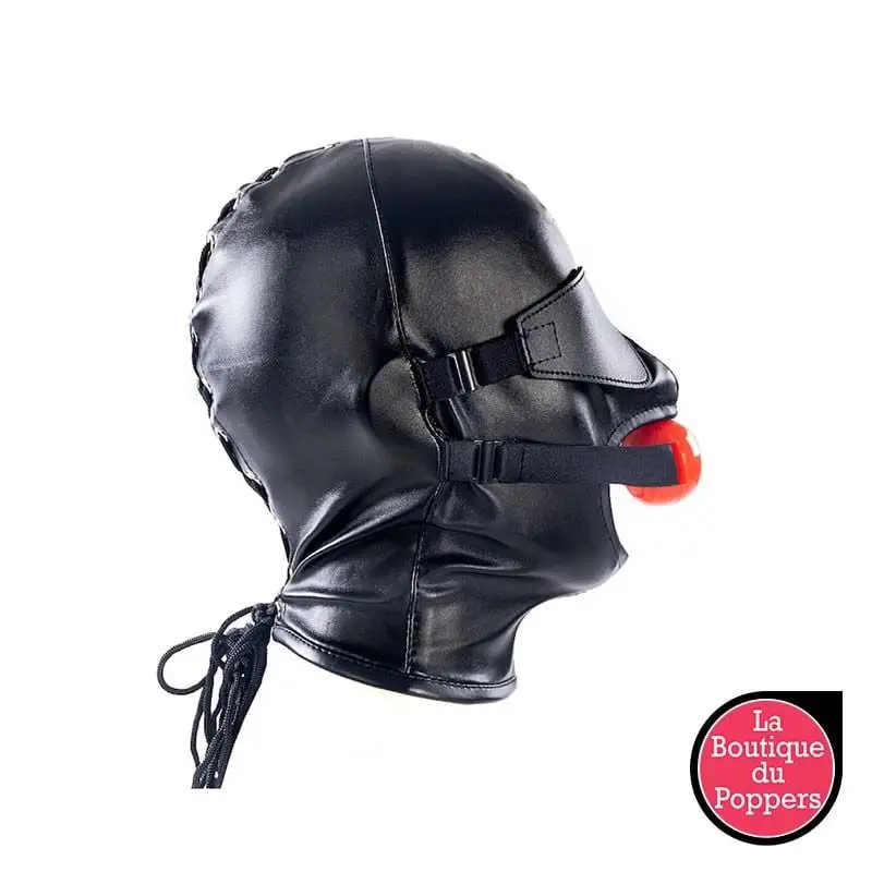 Une fois totalement en place avec le bâillon, le masque et la cagoule, vous serez libre de jouer avec votre partenaire.