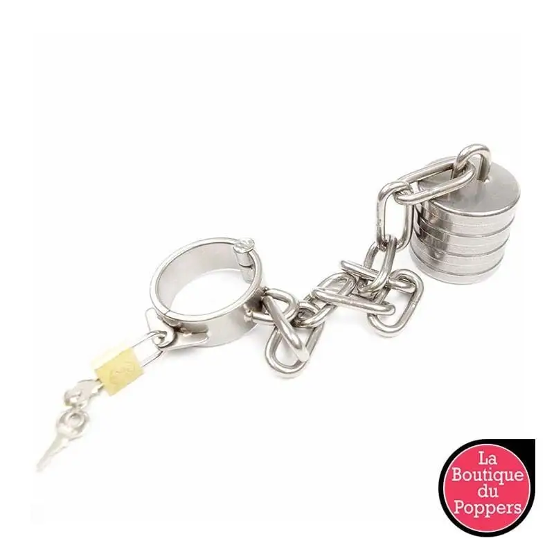 Le cockring est d’un diamiètre de 4,3cm pour se mettre à la base du sexe ou des testicules. La chaine mesure 26cm. Le poids est de 450 grammes pour un maximum de plaisir è!