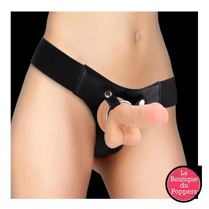 Le harnais est élastique. L’anneau en métal permet de maintenir le gode. Gode en PVC