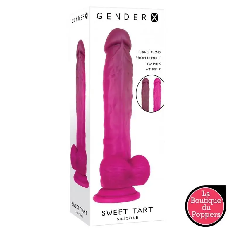 Le gode en silicone Sweet Tart Gender X est un jouet sexuel conçu pour la stimulation vaginale ou anale. Il est fabriqué à partir de silicone de qualité, qui est hypoallergénique et sans danger pour le corps. Le gode a une forme phallique réaliste avec une tête légèrement courbée pour atteindre les zones érogènes. Ce gode est texturé avec des nervures et des bosses le long de sa surface pour une stimulation supplémentaire. Fabriqué en matière thermo-réactive, il passe du rose au violet quand la température atteint 32°. Le terme « Gender X » fait référence à une approche non-binaire de la sexualité et de la représentation de genre, où le jouet est conçu pour être utilisé par toutes les personnes, indépendamment de leur genre.