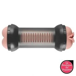 Le masturbateur Dooby est un sextoy dispose de deux entrées : une entrée constituer avec une Vulve pour simuler une pénétration vaginale l’autre entrée en forme d’anus pour une sodomie.